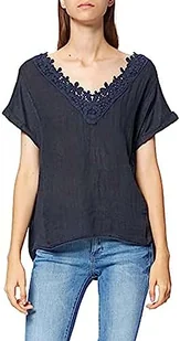 Bonateks, Sznurowany top z dekoltem w serek i krótkimi rękawami, 100% len, rozmiar DE:38, rozmiar US:M, topy, granatowe - wyprodukowano we Włoszech, niebieski, 38