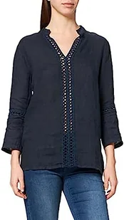 Bonateks, Tunezyjska tunika z kołnierzem z koronką i rękawami 3/4, 100% len, rozmiar DE:34, rozmiar US:S, topy, granatowe - wyprodukowano we Włoszech, niebieski, 34