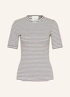 Prosty krój. Okrągły dekolt. Wzór w paski na całej powierzchni. Miękki w dotyku materiał. Elastyczna bawełna