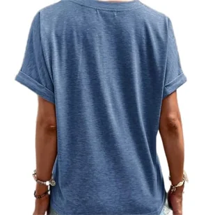Clotth Europejskie i amerykańskie topy damskie jednokolorowe guziki guziki moda krótkie rękawy, Blue-m, M