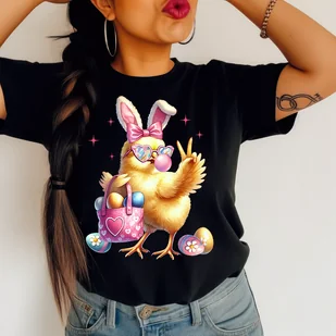 Czarna Damska koszulka z kurczaczkiem na wielkanoc