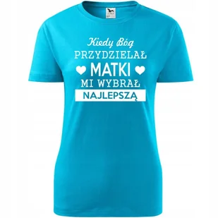 Damska Koszulka Dzień Mamy Kiedy bog przydzielał matki mi wybrał najlepszą turkusowy S ❤️ O koszulce Damskiej 100 % ekologicznej bawełny wzmocnienie na rami...