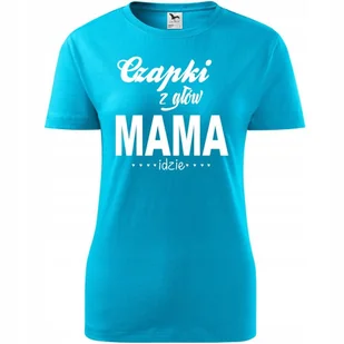 Damska Koszulka na Dzień Mamy Czapki z głów mama idzie na Prezent dla Mamy turkusowy L ❤️ O koszulce Damskiej 100 % ekologicznej bawełny wzmocnienie na rami...