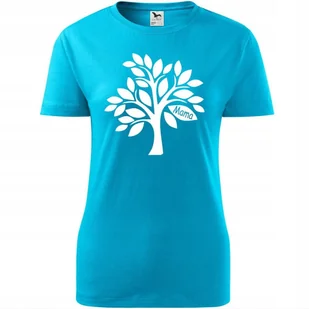 Damska Koszulka na Dzień Mamy Drzewo mama na Prezent dla Mamy Urodziny turkusowy M ❤️ O koszulce Damskiej 100 % ekologicznej bawełny wzmocnienie na ramionac...