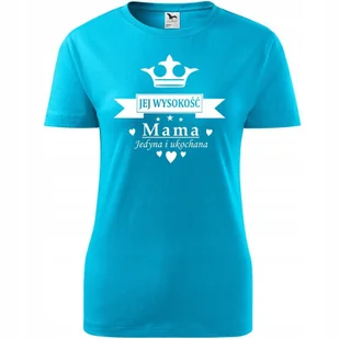 Damska Koszulka na Dzień Mamy Jej wysokość mama Prezent dla Mamy Urodziny turkusowy M ❤️ O koszulce Damskiej 100 % ekologicznej bawełny wzmocnienie na ramio...