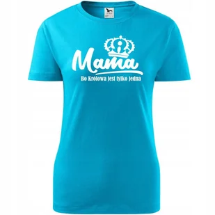 Damska Koszulka na Dzień Mamy Mama bo królowa jest tylko jedna na Prezent turkusowy XS ❤️ O koszulce Damskiej 100 % ekologicznej bawełny wzmocnienie na rami...