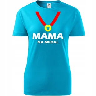 Damska Koszulka na Dzień Mamy mama na medalna Prezent Urodziny turkusowy XL O koszulce Damskiej 100 % ekologicznej bawełny wzmocnienie na ramionach koszu...
