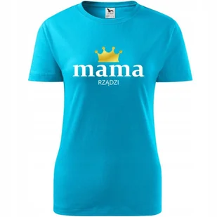 Damska Koszulka na Dzień Mamy Mama rządzi na Prezent dla Mamy Urodziny turkusowy M