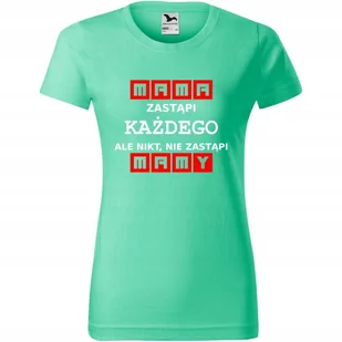 Damska Koszulka na Dzień Mamy Mama zastąpi każdego ale nikt nie zastąpi miętowy L ❤️ O koszulce Damskiej 100 % ekologicznej bawełny wzmocnienie na ramionach...