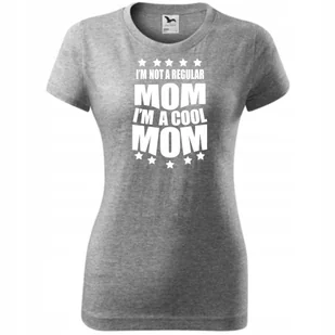 Damska Koszulka na Dzień Mamy Mom cool mom na Prezent Urodziny Nadruk ciemnoszary melanż XXL ❤️ O koszulce Damskiej 100 % ekologicznej bawełny wzmocnienie n...