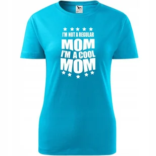 Damska Koszulka na Dzień Mamy Mom cool mom na Prezent Urodziny Nadruk turkusowy XS ❤️ O koszulce Damskiej 100 % ekologicznej bawełny wzmocnienie na ramionac...