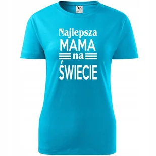 Damska Koszulka na Dzień Mamy Najlepsza mama na świecie na Prezent Urodziny turkusowy S O koszulce Damskiej 100 % ekologicznej bawełny wzmocnienie na ram...