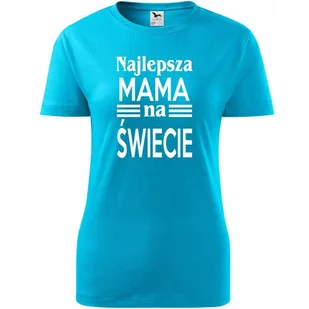 Damska Koszulka na Dzień Mamy Najlepsza mama na świecie na Prezent Urodziny turkusowy XL ❤️ O koszulce Damskiej 100 % ekologicznej bawełny wzmocnienie na ra...