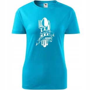 Damska Koszulka na Dzień Mamy Nie ma jak u mamy na Prezent Urodziny turkusowy M ❤️ O koszulce Damskiej 100 % ekologicznej bawełny wzmocnienie na ramionach k...