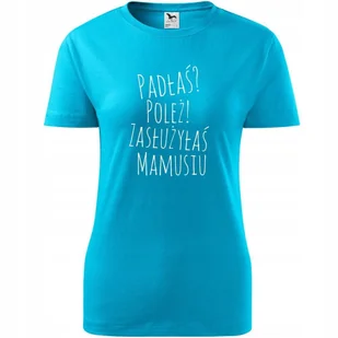 Damska koszulka na Dzień Mamy Padłaś poleż zasłużyłaś mamusiu na Prezent turkusowy L ❤️ O koszulce Damskiej 100 % ekologicznej bawełny wzmocnienie na ramion...