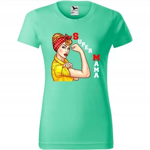 Damska Koszulka na Dzień Mamy Super mama na Prezent dla Mamy Urodziny miętowy XL ❤️ O koszulce Damskiej 100 % ekologicznej bawełny wzmocnienie na ramionach ...