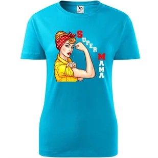 Damska Koszulka na Dzień Mamy Super mama na Prezent dla Mamy Urodziny turkusowy XXL