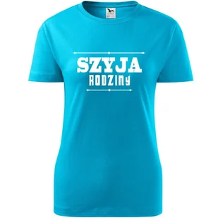 Damska Koszulka na Dzień Mamy Szyja rodziny na Prezent dla Mamy Urodziny turkusowy XXL O koszulce Damskiej 100 % ekologicznej bawełny wzmocnienie na rami...