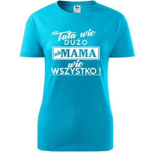 Damska Koszulka na Dzień Mamy tata wie dużo ale mama wie wszystko Prezent turkusowy M
