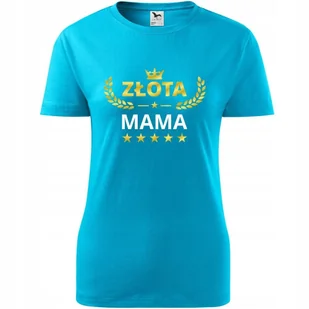 Damska Koszulka na Dzień Mamy Złota mama na Prezent dla Mamy Urodziny turkusowy XXL ❤️ O koszulce Damskiej 100 % ekologicznej bawełny wzmocnienie na ramiona...