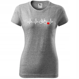 Damska Koszulka Nadruk Rowerowa Linia życia rower Prezent dla Rowerzystki ciemnoszary melanż M ❤️ O koszulce Damskiej 100 % ekologicznej bawełny wzmocnienie...