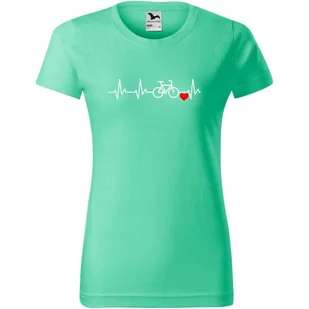Damska Koszulka Nadruk Rowerowa Linia życia rower Prezent dla Rowerzystki miętowy M ❤️ O koszulce Damskiej 100 % ekologicznej bawełny wzmocnienie na ramiona...