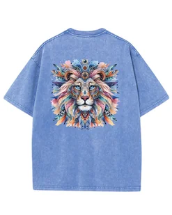 Damska koszulka oversize efekt sprania Artystyczny Kolorowy Lew Błękitna S