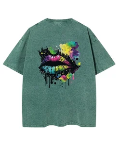 Damska koszulka oversize efekt sprania Kolorowe Usta Zielona XL