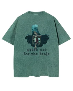 Damska koszulka oversize efekt sprania Szkielet Panna Młoda Zielona L