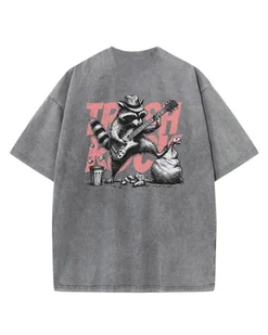 Damska koszulka oversize Trash Rock Szop Pracz sprana Szary L