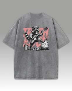 Damska koszulka oversize Trash Rock Szop Pracz sprana Szary M