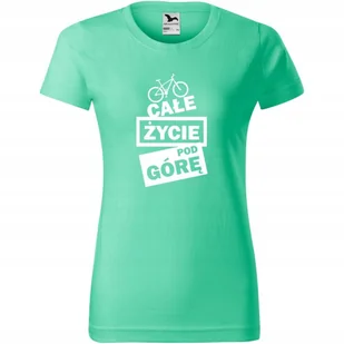 Damska Koszulka Rower Całe zycie pod górke rowerem Prezent dla Rowerzystki miętowy S ❤️ O koszulce Damskiej 100 % ekologicznej bawełny wzmocnienie na ramion...