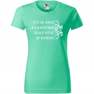 Damska Koszulka Rowerowa Życie jest za krótkie Prezent dla Rowerzystki miętowy L ❤️ O koszulce Damskiej 100 % ekologicznej bawełny wzmocnienie na ramionach ...