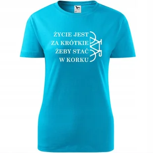 Damska Koszulka Rowerowa Życie jest za krótkie Prezent dla Rowerzystki turkusowy L ❤️ O koszulce Damskiej 100 % ekologicznej bawełny wzmocnienie na ramionac...