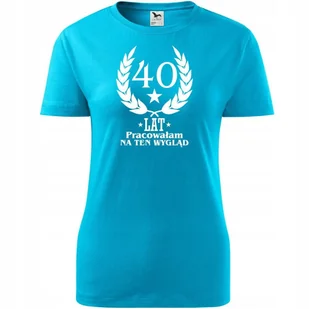 Damska Koszulka z Nadruk 40 lat pracowałam na ten wygląd Prezent Urodziny turkusowy L ❤️ O koszulce Damskiej 100 % ekologicznej bawełny wzmocnienie na ramio...