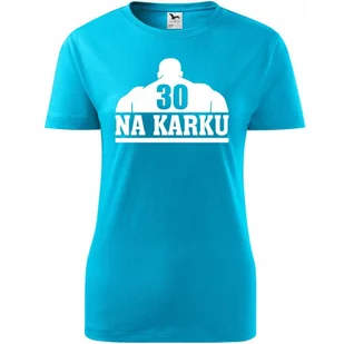 Damska Koszulka z Nadrukiem 30 lat na karku na Prezent Urodziny dla Niej turkusowy S ❤️ O koszulce Damskiej 100 % ekologicznej bawełny wzmocnienie na ramion...