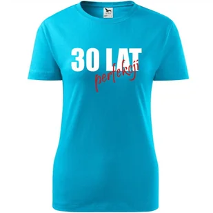 Damska Koszulka z Nadrukiem 30 lat perfekcji na trzydzieste urodziny turkusowy M ❤️ O koszulce Damskiej 100 % ekologicznej bawełny wzmocnienie na ramionach ...