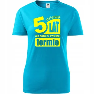 Damska Koszulka z Nadrukiem 50 lat ale nadal w świetnej formie na Prezent turkusowy L O koszulce męskiej 100 % ekologicznej bawełny wzmocnienie na ramionach ...