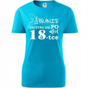 Damska Koszulka z Nadrukiem Branie Zaczyna Się Po 18 Prezent na Urodziny turkusowy L
