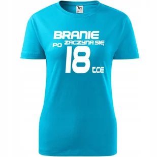 Damska Koszulka z Nadrukiem Branie Zaczyna Się Po 18 Prezent na Urodziny turkusowy L ❤️ O koszulce Damskiej 100 % ekologicznej bawełny wzmocnienie na ramion...