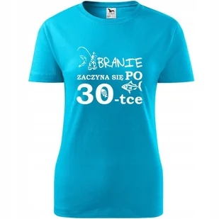 Damska Koszulka z Nadrukiem Branie zaczyna się po 30 ryba Prezent Urodziny turkusowy XXL - Atram