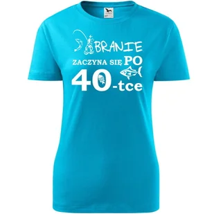 Damska Koszulka z Nadrukiem Branie zaczyna się po 40 ryba na Prezent turkusowy L ❤️ O koszulce Damskiej 100 % ekologicznej bawełny wzmocnienie na ramionach ...