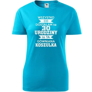Damska Koszulka z Nadrukiem Dostałam na 30 urodziny to ta gówniana koszulka turkusowy XXL ❤️ O koszulce Damskiej 100 % ekologicznej bawełny wzmocnienie na r...