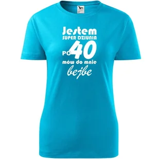 Damska Koszulka z Nadrukiem Jestem super dziunia po 40 mów do mnie bejbe turkusowy XXL ❤️ O koszulce Damskiej 100 % ekologicznej bawełny wzmocnienie na rami...