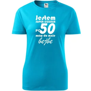 Damska Koszulka z Nadrukiem jestem super dziunia po 50 mów do mnie bejbe turkusowy M - Atram