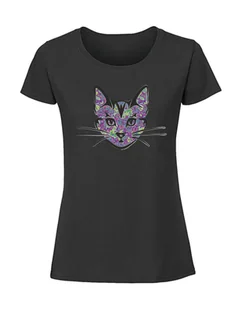 Damska koszulka z nadrukiem - Kot kolorowy kolor czarny S