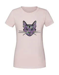 Damska koszulka z nadrukiem - Kot kolorowy kolor Pudrowy Róż S