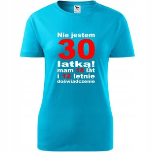 Damska Koszulka z Nadrukiem Nie jestem 30 latką Prezent na Urodzin dla Niej turkusowy XXL ❤️ O koszulce Damskiej 100 % ekologicznej bawełny wzmocnienie na r...