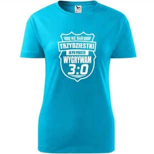 Damska Koszulka z Nadrukiem Nie mam trzydziestki ja po prostu wygrywam 3:0 turkusowy M ❤️ O koszulce Damskiej 100 % ekologicznej bawełny wzmocnienie na rami...
