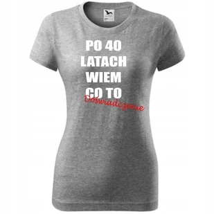 Damska Koszulka z Nadrukiem Po 40 latach wiem co to doświadczenie - super ciemnoszary melanż XL ❤️ O koszulce Damskiej 100 % ekologicznej bawełny wzmocnieni...